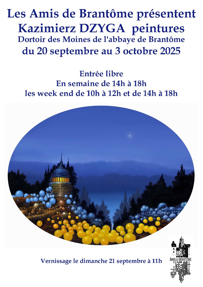 Les Amis de Brantôme ont eu le plaisir d’accueillir l’exposition de Kazimierz Dzyga, grand maître du réalisme fantastique et médaille d’or du Festival International de Peinture d’Osaka au Japon